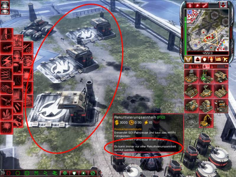 Um die zwei "Kanes Stimmen" zu bauen habe ich nur eine Fraktion gabraucht. (Kanes Jünger) Dann bin ich rüber zum Gegner und hab seine Armee infiltriert und hab damit die drei "Rekultivierungseinheiten" gebaut. (Ich hätte auch mehr bauen können) Doch wie schon erwähnt kann man auf diese art nicht mehrere MARV's bauen.