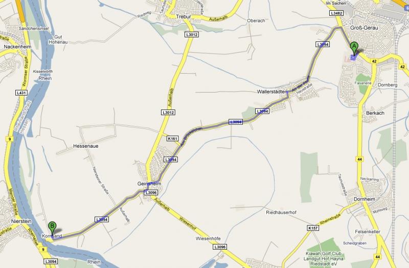 Hab mal nen Screenshot beigefügt, liegt zwischen Worms und Mainz. Kommt halt auf Tag+Uhrzeit an ob wir uns da treffen könnten oder ich dich an einen Wochenende eventuell sogar etwas begleite. ![]()