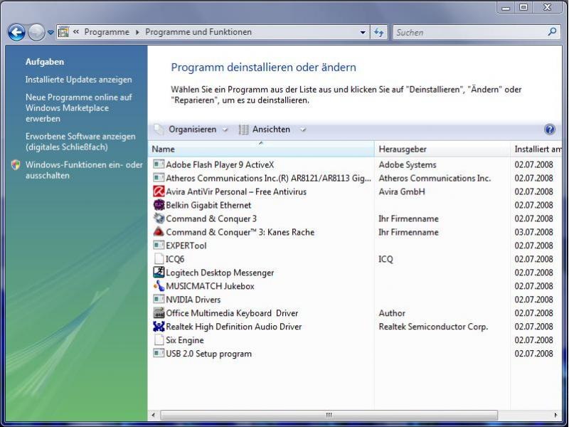 Ich habe meinen neuen Rechner gestern eingerichtet und nur Treiber, ICQ 6 und KW installiert.