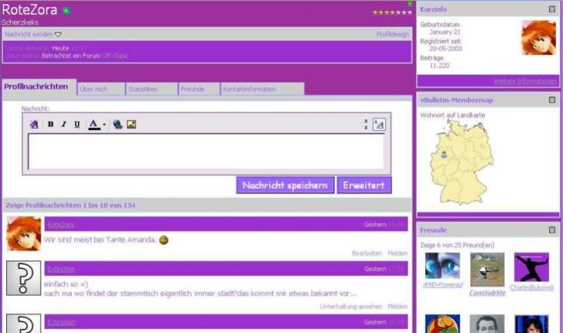 Da bisher nur bei den Jungs von Z-21 so ein Thema existiert, aber nicht alle die Clanforen durchwühlen, ist vllt. die Chance grösser, das hier neue Profiltapeten auffallen. Ich will jetzt damit nicht auf mich aufmerksam machen, sondern eher auf eine Person, die sich zum Glück nicht so oft neue Schuhe kauft, wie Sie ihr Profil ändert. Das ist schon mind. die Dritte neue Tapete in ihrer Hütte. Um wen es sich handelt findet man hier. Natürlich sind eure Profile hier auch erwünscht.  |
