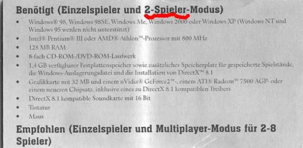 Aber auf der Referenzkarte und Systemanforderungen ist ein bereich für dieses Einzelspieler und 2 Spieler Modus.