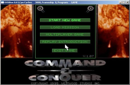 mount f f:\ mount e e:\ -t cdrom -label GDI e: cd \ cd Westwood cd C&C95 c&c.exe ![]() Das Spiel sollte dann starten, wenn du stattdessen für Nod spielen willst, musst du vorher die Nod-CD einlegen, und Anstelle der Zeile Code: