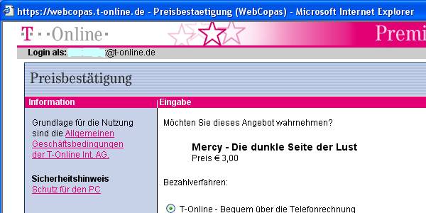 ![]() Ist doch echt schon erstaunlich, wie sich manche Firmen Mühe geben, das die Videos bloß nicht mit anderen Programmen laufen. Geh mal auf irgend eine Sex-Seite und such dir irgend ein Video aus, das läuft mit allen Browsern und Playern. Sehr verwunderlich. ![]() EDIT: Schön, das er kostenlos sein soll, nun kam ich bis zu dem Punkt wie ich die 3,00€ bezahlen möchte. Ganz Toll, typisch T-Online. EDIT2: Hier der Screen: