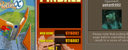 Das ist jetzt schon das zweite mal, dass ich zum Rollin X Pinball herausgefordert erde und es nicht zu Ende bringen kann... diesesmal ist es aber nicht meine Schuld: