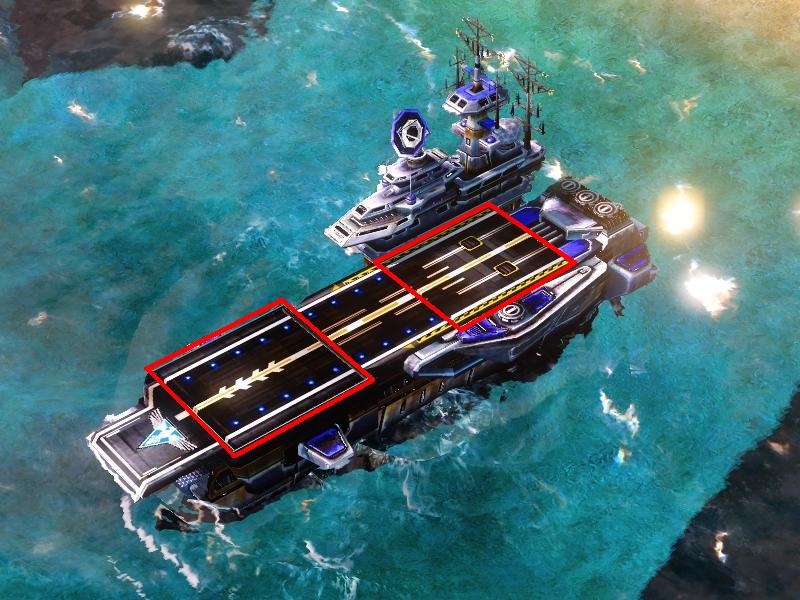Die eigenen Flieger starten so wie in Ra2 senkrecht von diesen Klappen und zusätzlich vielleicht ein Modus zum umstellen, das Bomber auf dem Träger landen können.