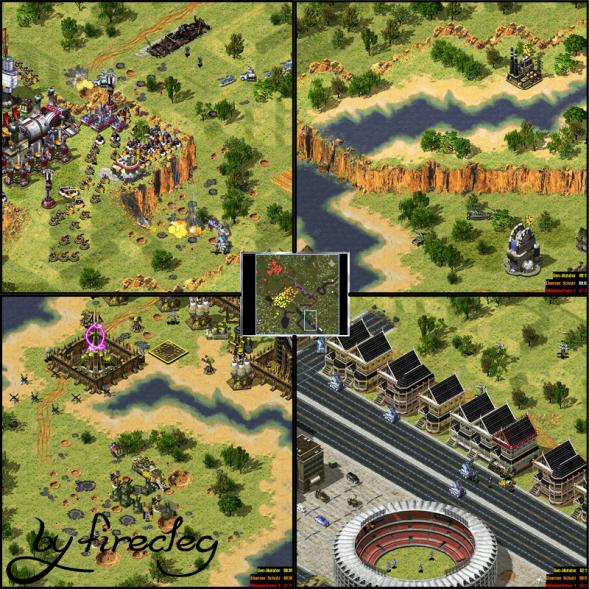Die Maps zu verbinden wäre bestimmt möglich, allerdings ist das zuviel des guten, die vielen Gebäude etc. würden die Map zu langsam machen. Die Landschaft werde ich daher selber Bauen, wahrscheinlich Schnee oder viel Grün mit kleinen Dörfern. Mittlerweile bin ich für max. 3 Menschliche Spieler. Die Angreifer kommen von 3 Fronten. Eine große Front (Landangriffe), eine kleine Front (Landangriffe) und ein Strand (Wasserangriffe). Die Lufteinheiten natürlich von überall her. Als besondere Schwierigkeit wollte ich einbauen das die Spieler auf unterschiedlich hohen ebenen Starten. Die Erzfelder sollten größtenteils geschützt sein, aber sie werden auch angegriffen. Sodass man darauf achten sollte wo man erntet. Außerdem gibt es 2 Ölfördertürme pro Spieler. Außerdem soll es im Spiel dazu kommen das die Angreifer mehrere Basen auf der Map aufbauen. Damit man falls mal nichts zu tun ist, auch angreifen kann und Taktisch mehr angeregt wird. Was haltet ihr davon?